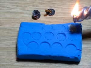 4.Mint your own coins--Press a button that has a raised pattern into oil based play dough and fill indentation with melted silver crayon or candle. Once the “coins” have cooled, pull “coins” out of clay and put in wallets. This does not work with Hearty or Sculpy, only play dough.
