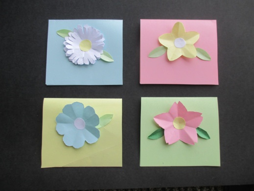 These flowers may look different, but the same technique is used to make them all. Simply fold and cut. Use them to make place cards, napkin rings, flower arrangements, or greeting cards.