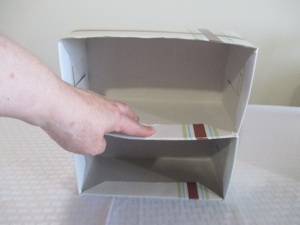 This square box was exactly the right size to make a roof on top of the tissue box. If you can’t find a square box, find one that you can cut 2 corners off that would be the right size to fit on top.